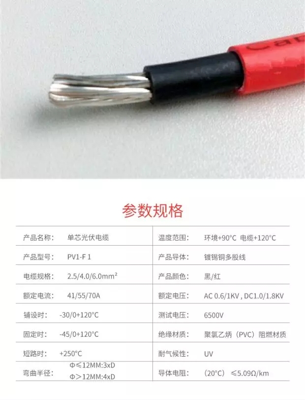 4平方電線電纜防水鍍錫銅芯光伏戶外太陽(yáng)能出口型國(guó)標(biāo)單芯